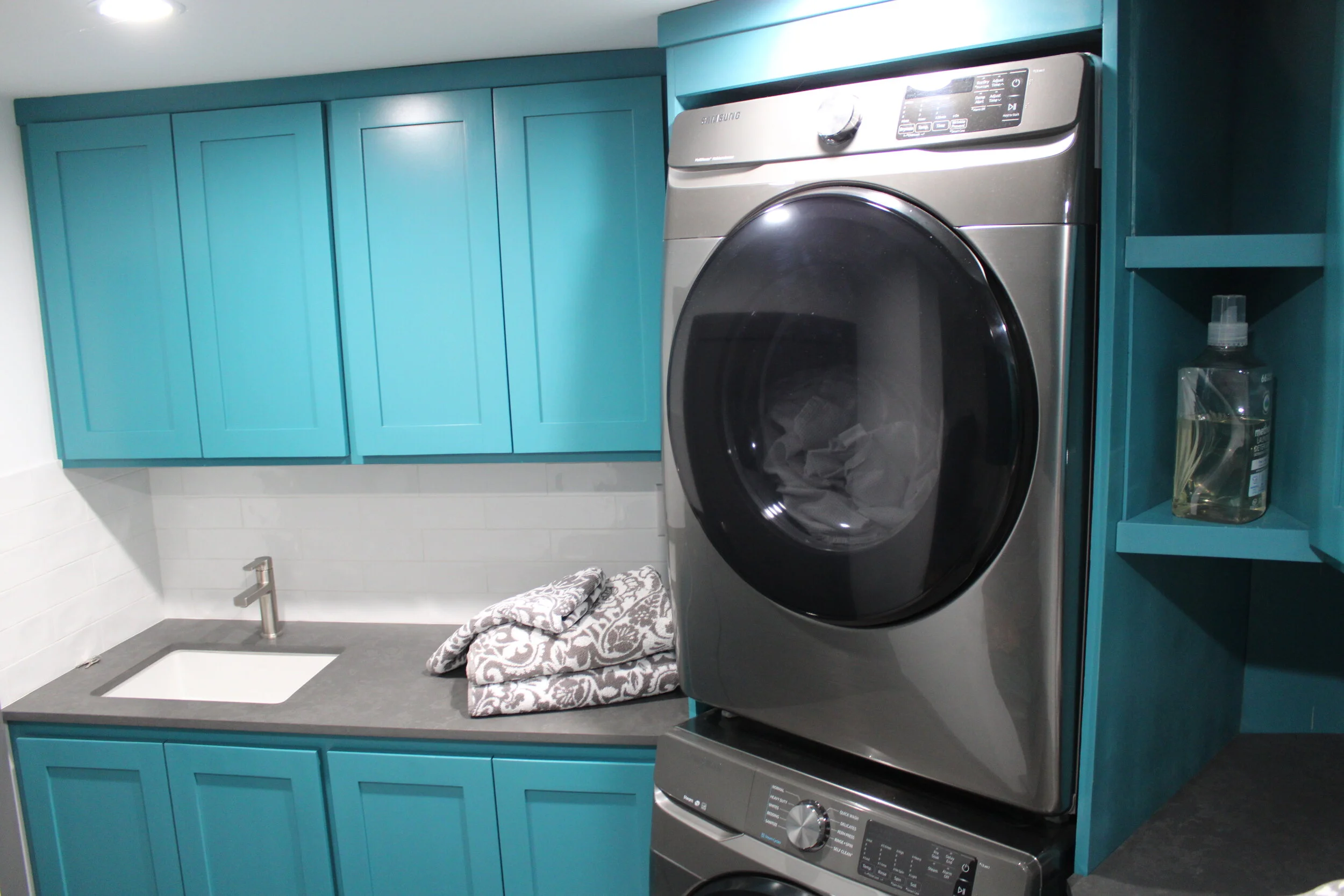 Dad’s Drums Mixed with the Kids’ Instruments, Video Games, Popcorn, and Movies Make this Room a Perfect Family Hangout! With Improvements to Comfort, Organization, Color, and Design I was able to create this Groovy Space. The Multi-Hue Hand Painted Wall on the Far-Side was Key to Making this Vision a Reality.
