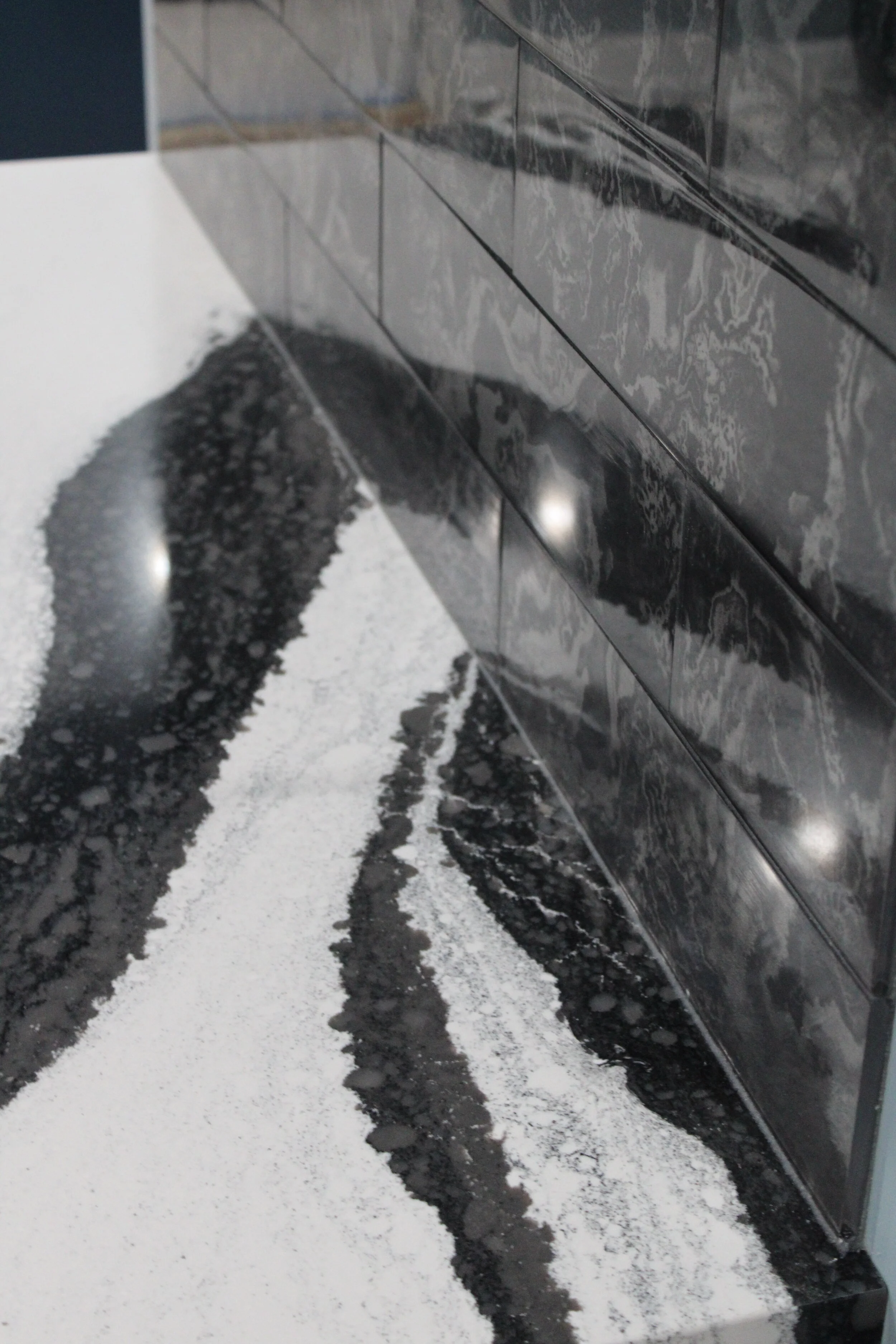 I Pride Myself on Attention to Detail. This Image Only Shows a Small Part of my Design Work on a Retro Hollywood Reboot Kitchen. Here, I Pair a Stunning and Bold Black and White Countertop with a Reflective Backsplash. The Result is a Subtle yet Beautiful Mirroring of the Countertop. Truly Bold; Truly One of Kind.